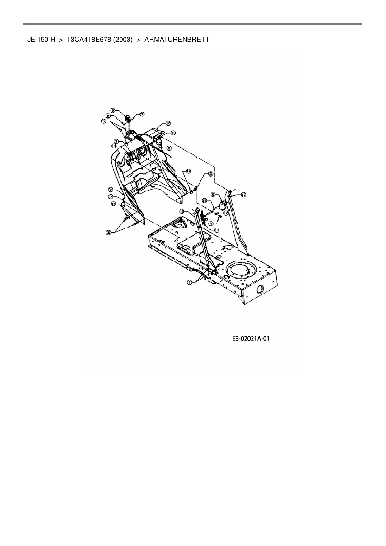 Ersatzteile für Rasentraktor MTD JE 150 H aus der Zeichnung Armaturenbrett: