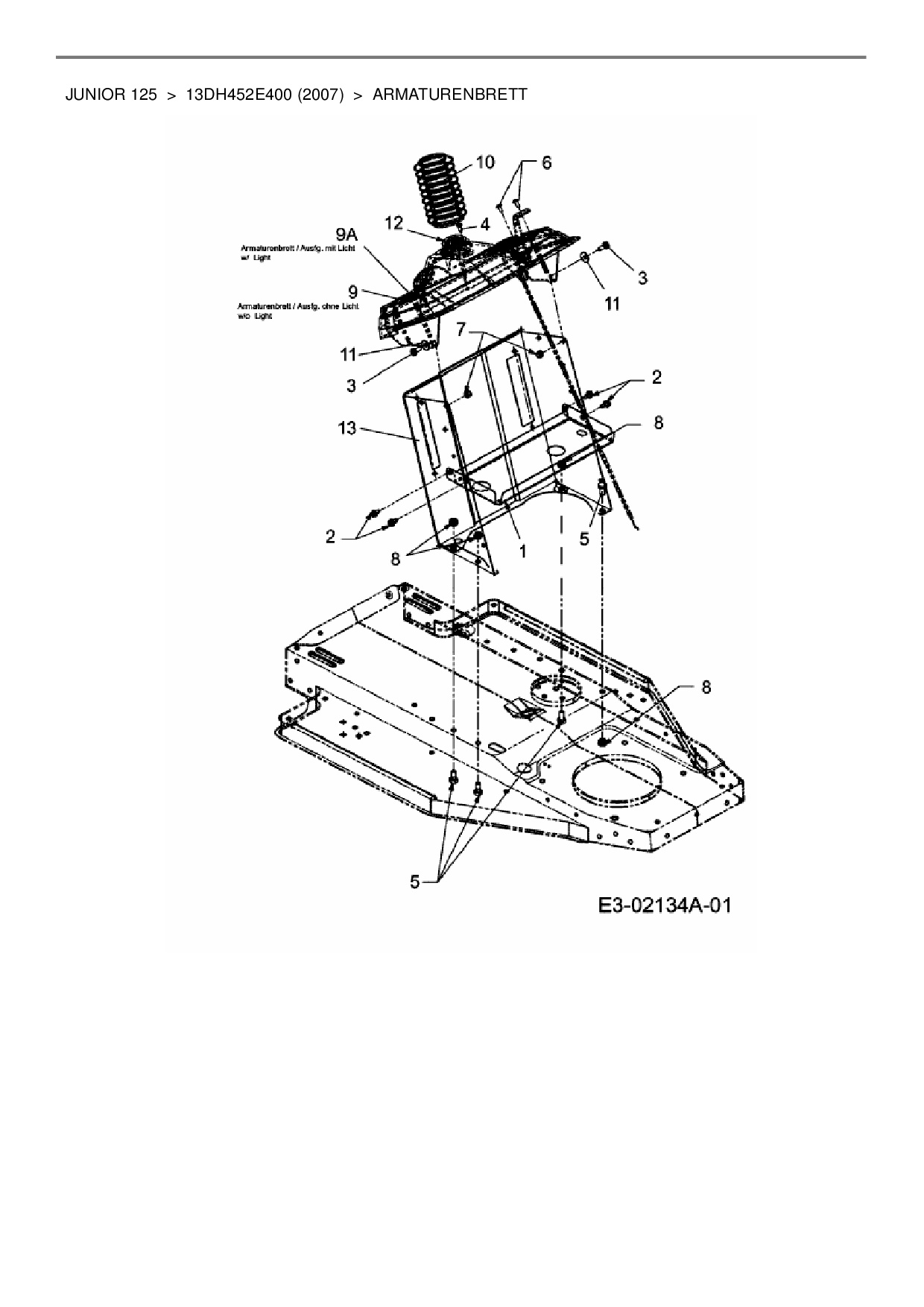 Ersatzteile für Rasentraktor MTD Junior 125 aus der Zeichnung Armaturenbrett: