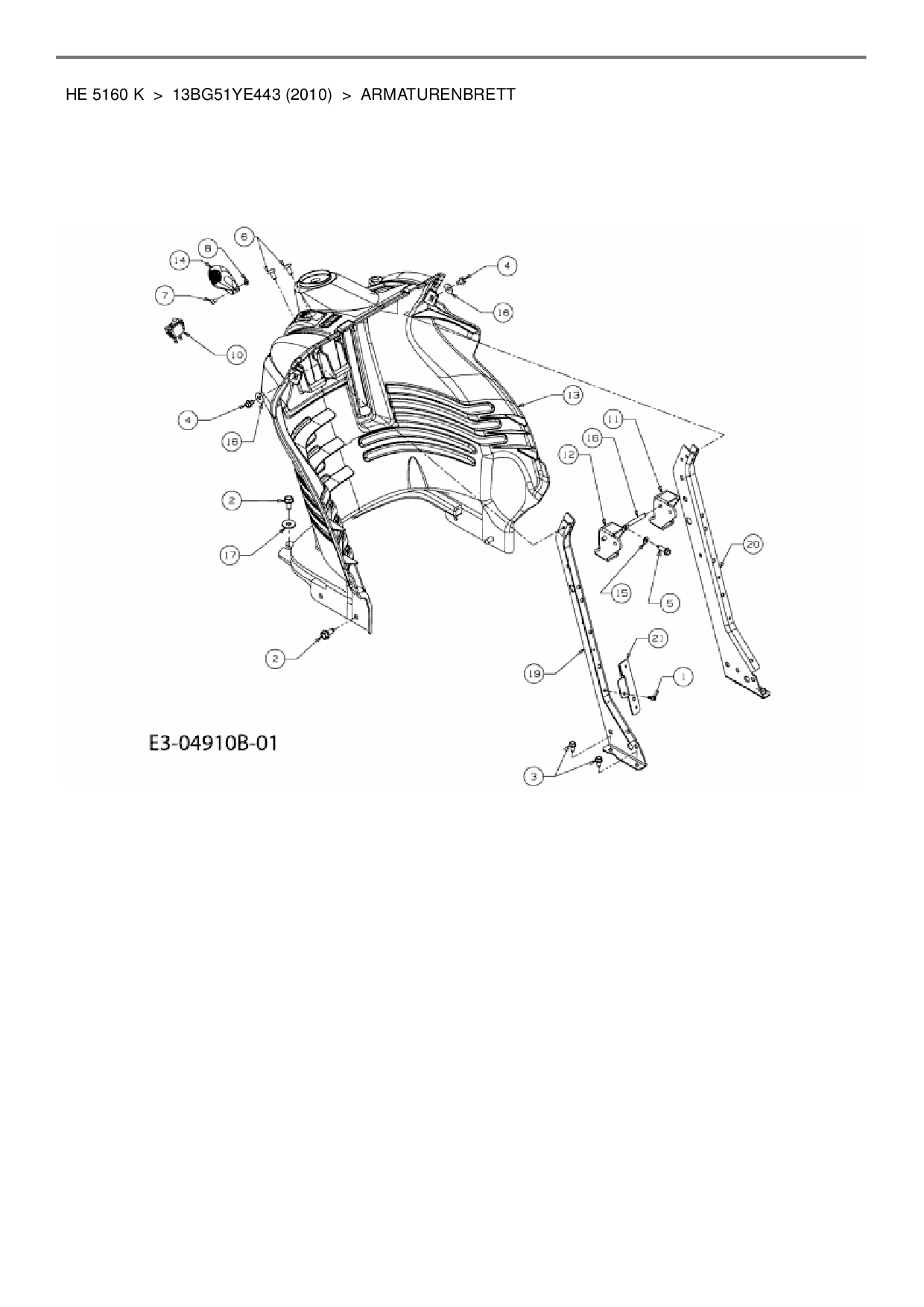 Ersatzteile für Rasentraktor Yard-Man HE 5160 K aus der Zeichnung Armaturenbrett: