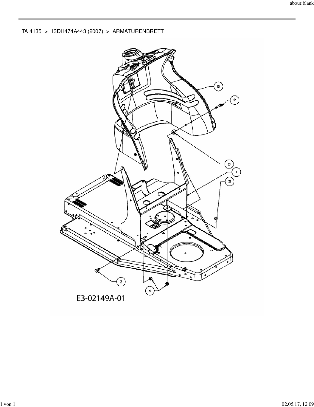Ersatzteile für Rasentraktor Yard-Man TA 4135 aus der Zeichnung Armaturenbrett: