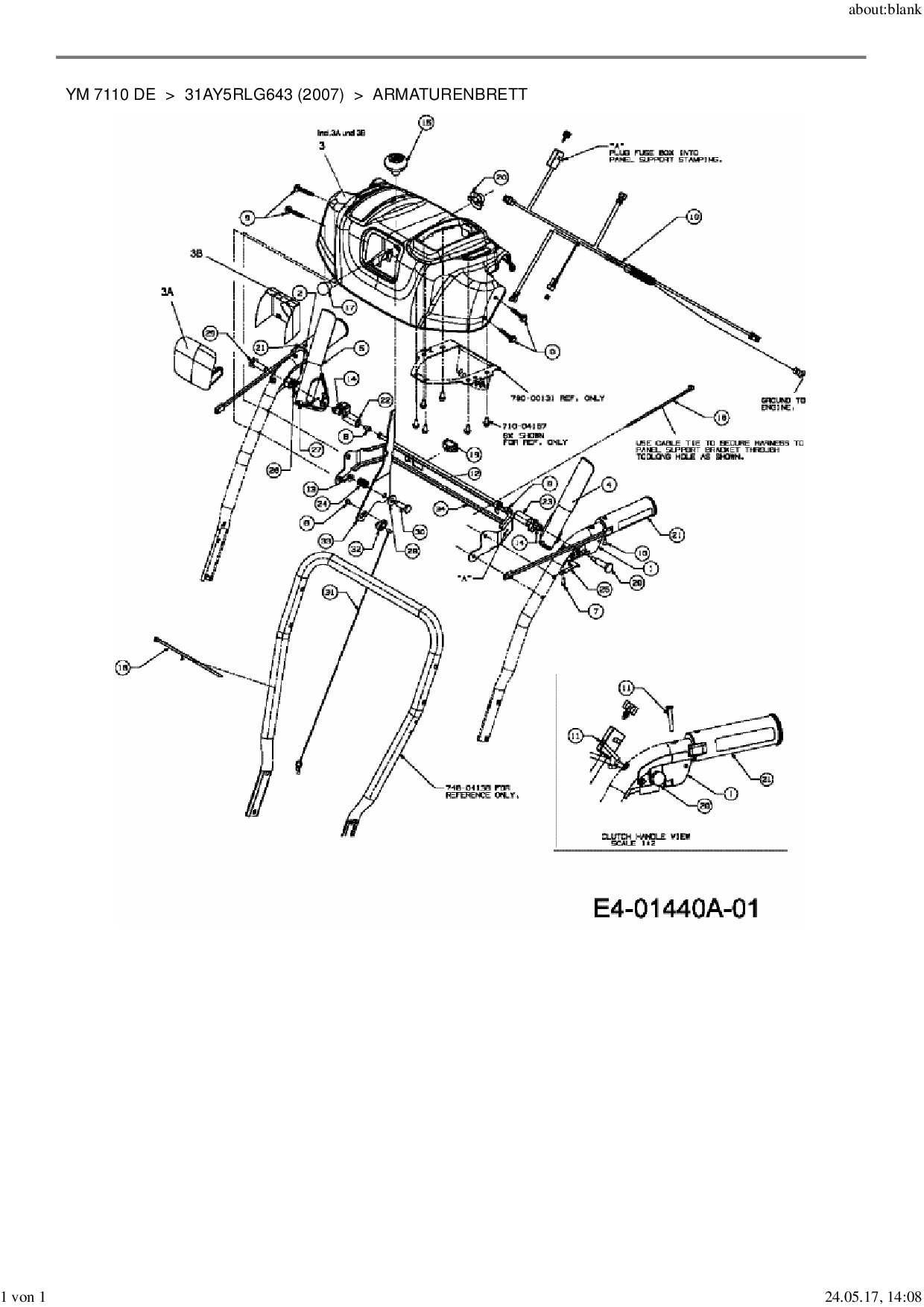 Ersatzteile für Schneefräsen Yard-Man YM 7110 DE aus der Zeichnung Armaturenbrett: