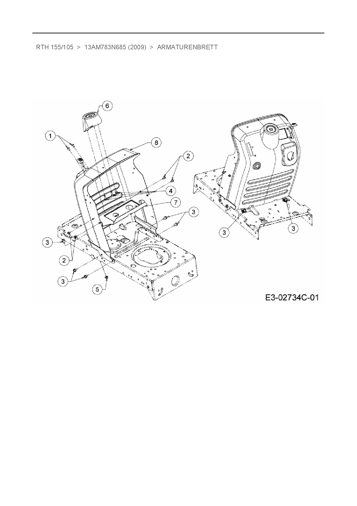 Ersatzteile für Rasentraktor Sunline RTH 155/105 aus der Zeichnung Armaturenbrett:
