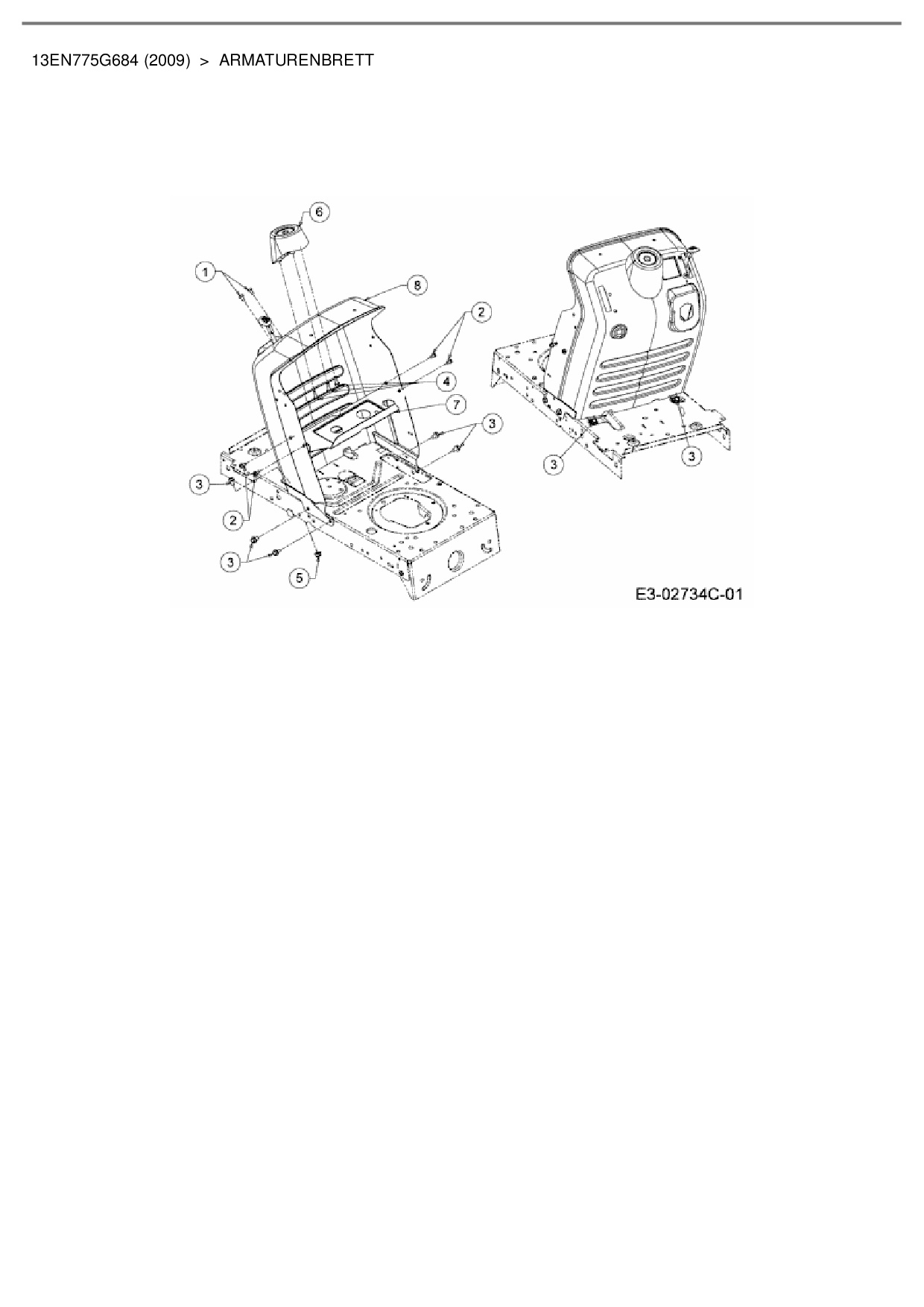 Ersatzteile für Rasentraktor Bolens BL 175/107 T aus der Zeichnung Armaturenbrett: