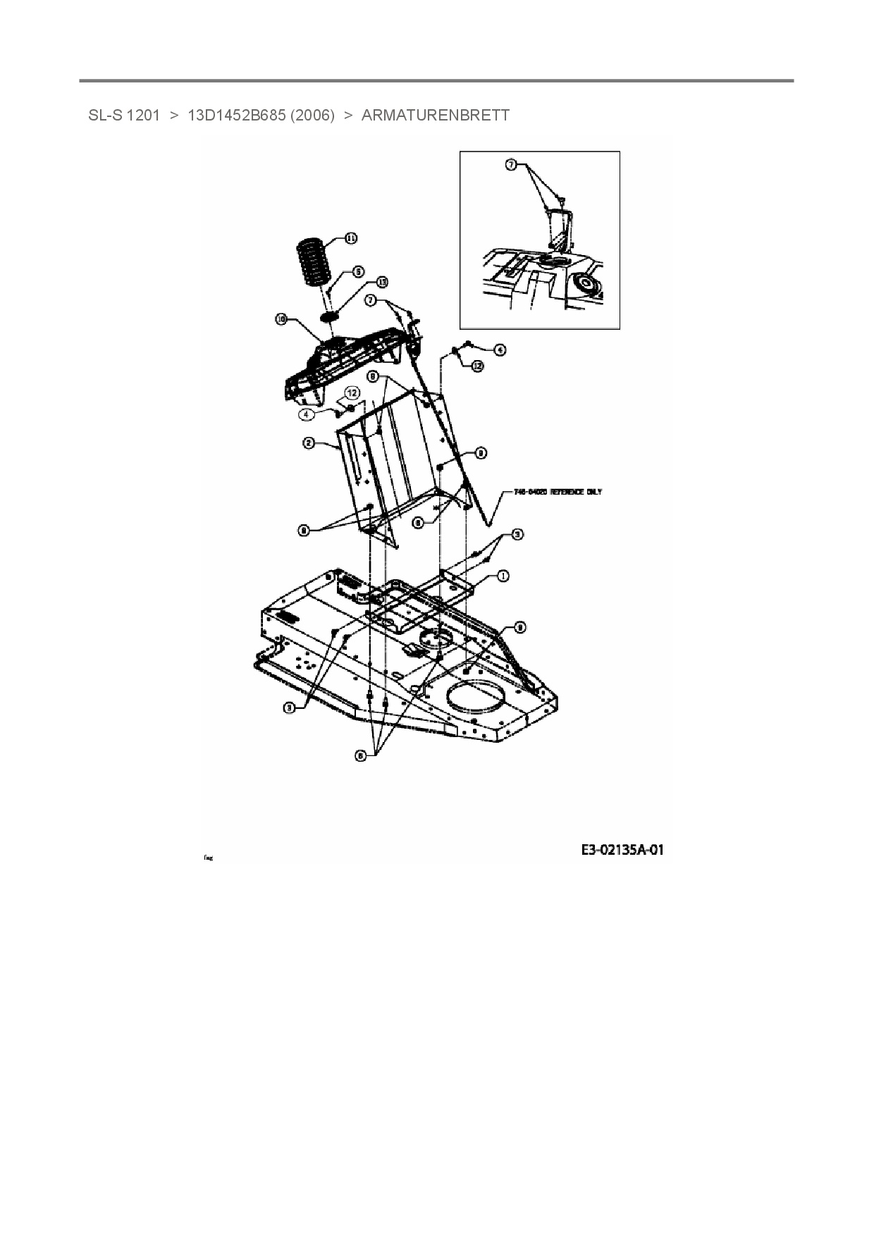 Ersatzteile für Rasentraktor Sunline SL-S 1201 aus der Zeichnung Armaturenbrett: