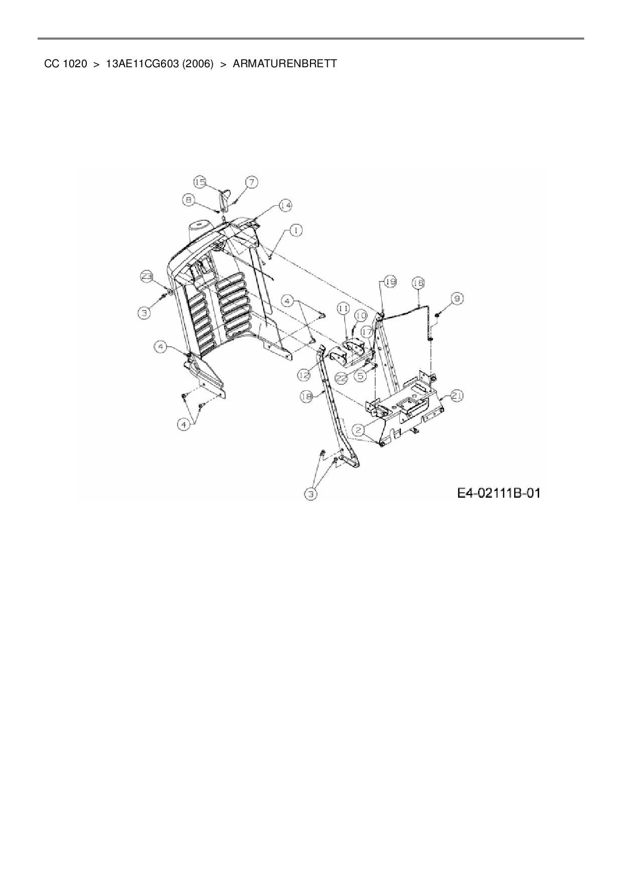 Ersatzteile für Rasentraktor Cub Cadet CC 1020 aus der Zeichnung Armaturenbrett: