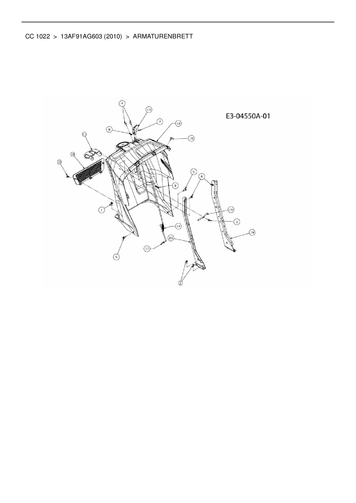 Ersatzteile für Rasentraktor Cub Cadet CC 1022 aus der Zeichnung Armaturenbrett: