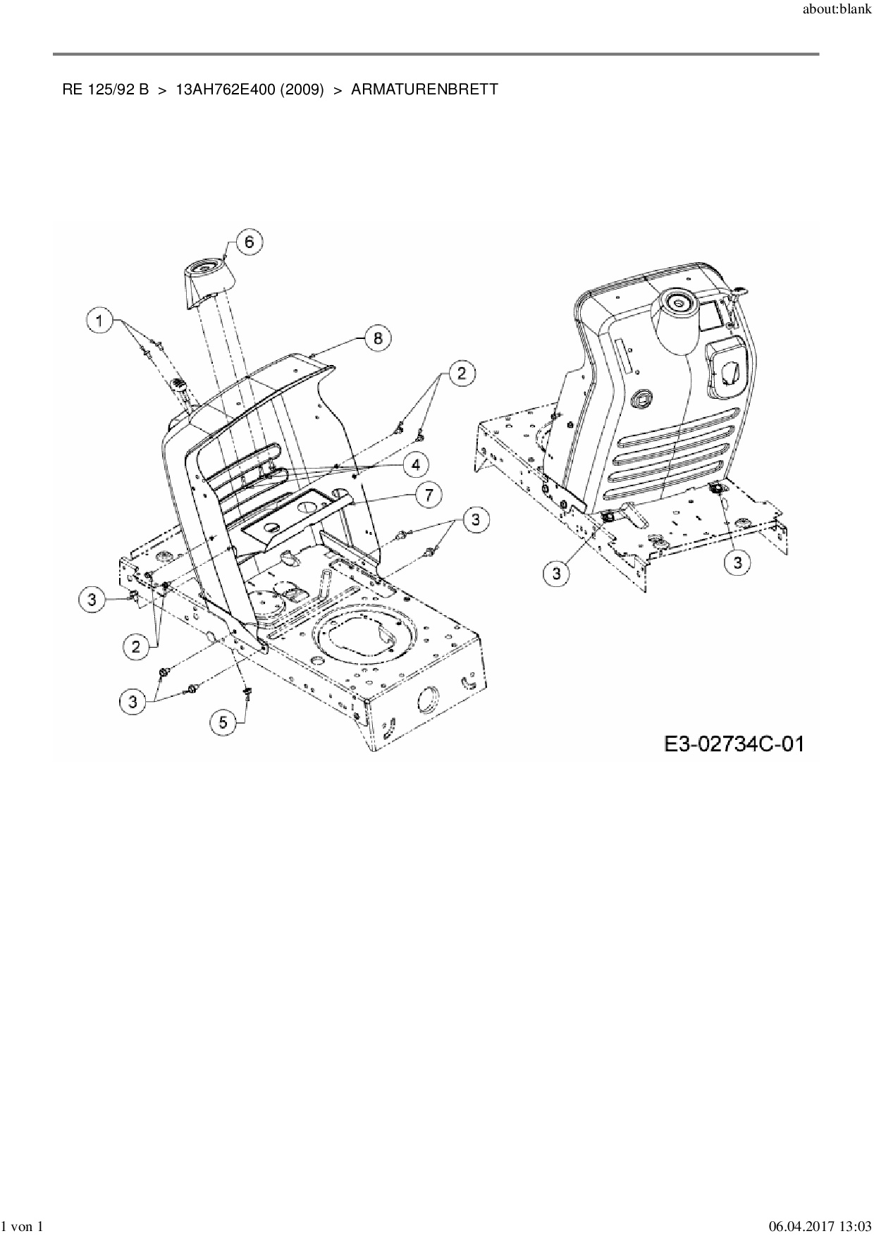 Ersatzteile für Rasentraktor MTD RE 125/92 B aus der Zeichnung Armaturenbrett: