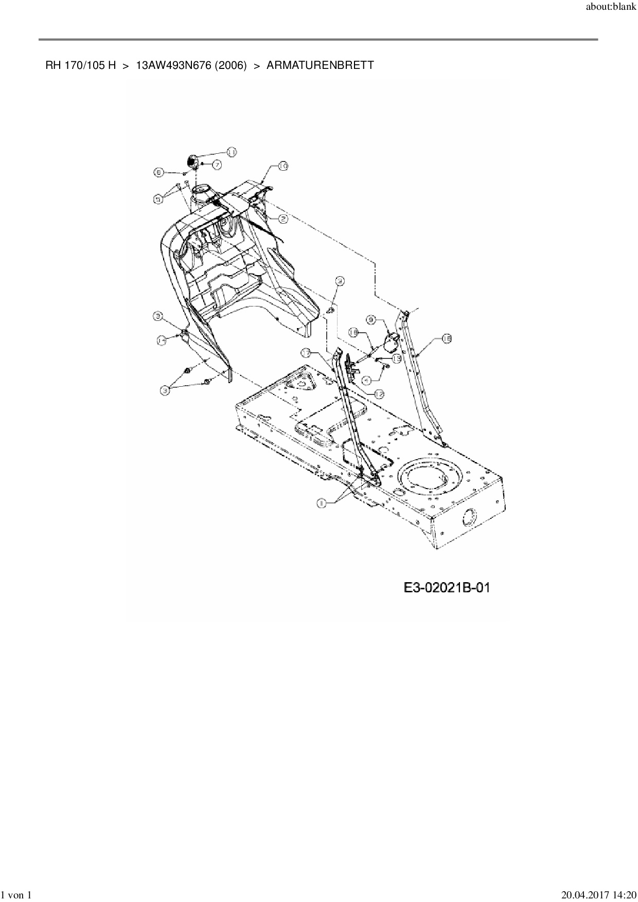 Ersatzteile für Rasentraktor MTD RH 170/105 H aus der Zeichnung Armaturenbrett: