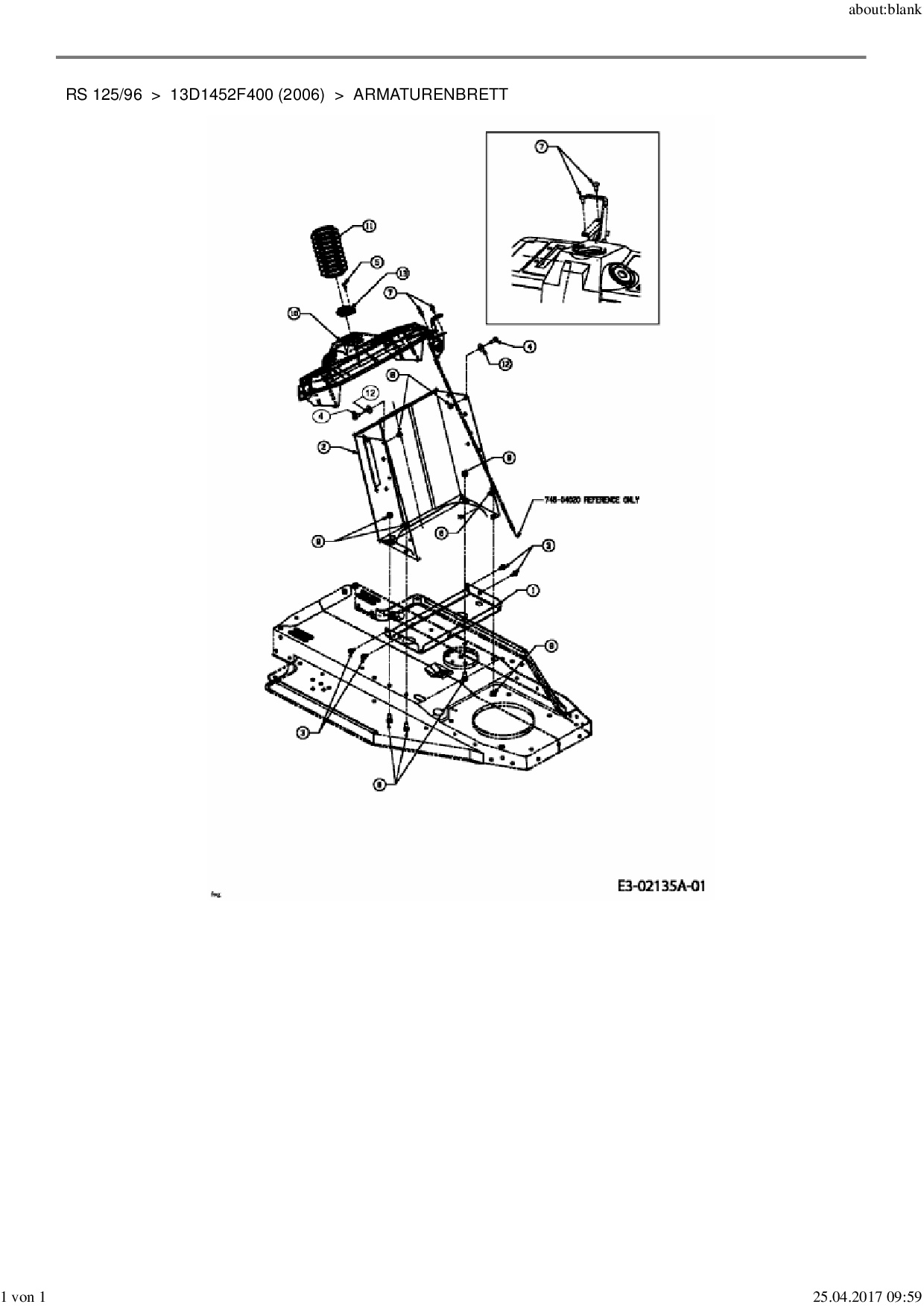 Ersatzteile für Rasentraktor MTD RS 125/96 aus der Zeichnung Armaturenbrett: