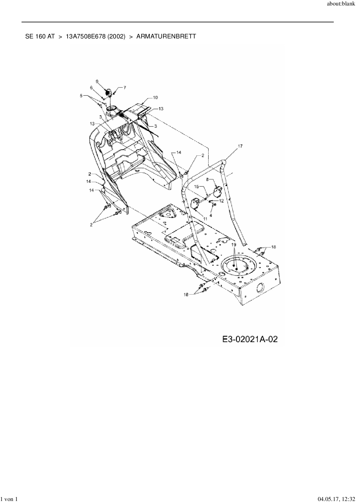 Ersatzteile für Rasentraktor MTD SE 160 AT aus der Zeichnung Armaturenbrett: