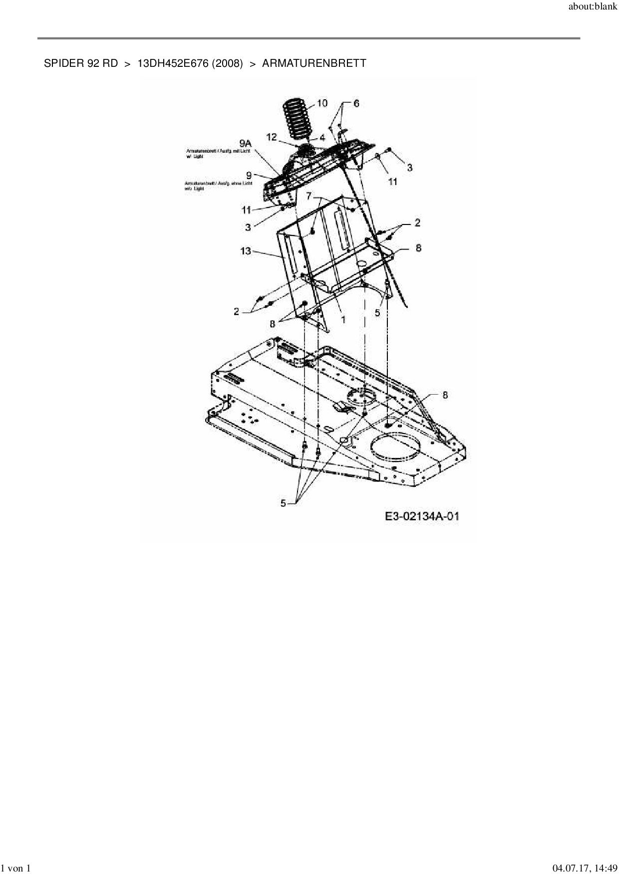Download Ersatzteil-Zeichnung MTD Spider 92 RD Zeichnung Armaturenbrett (PDF-Format)