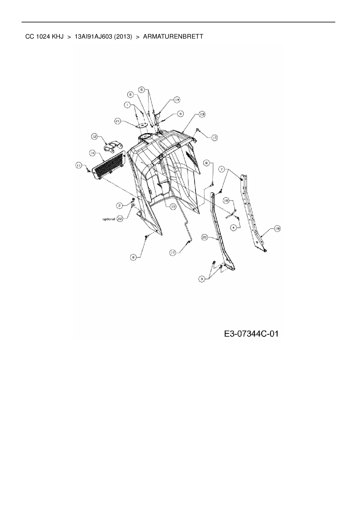 Ersatzteile für Rasentraktor Cub Cadet CC 1024 KHJ aus der Zeichnung Armaturenbrett: