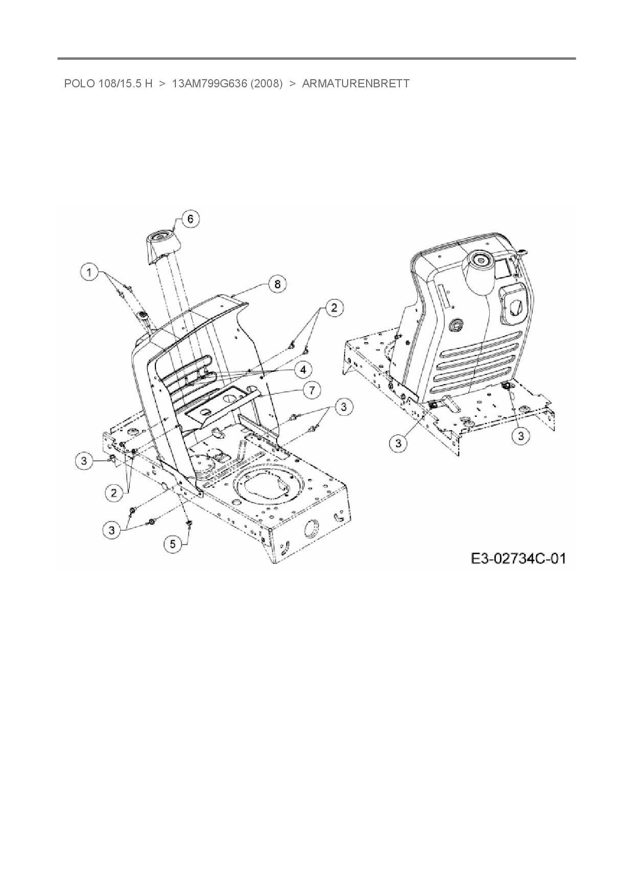 Ersatzteile für Rasentraktor Oleo-Mac Polo 108/15.5 H aus der Zeichnung Armaturenbrett: