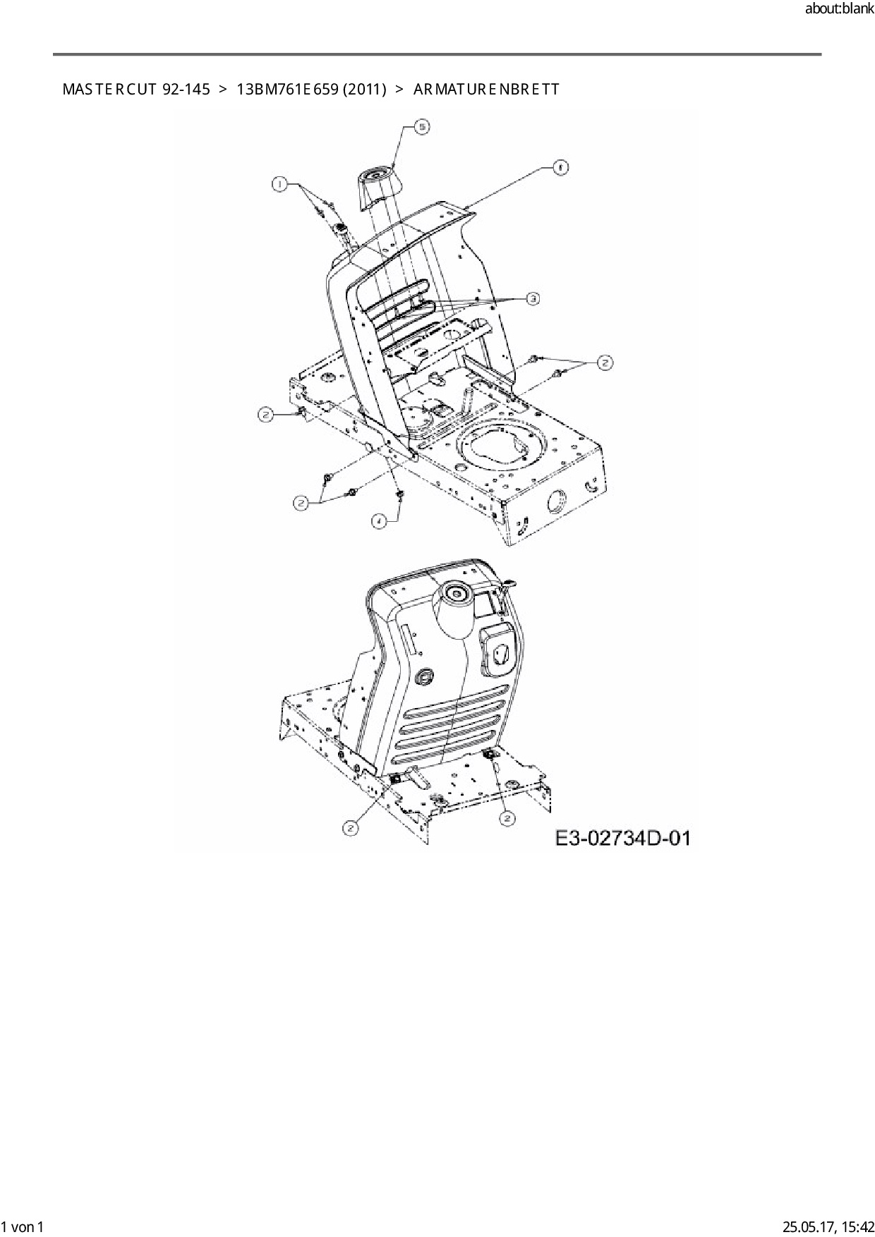 Ersatzteile für Rasentraktor Mastercut Mastercut 92-145 aus der Zeichnung Armaturenbrett:
