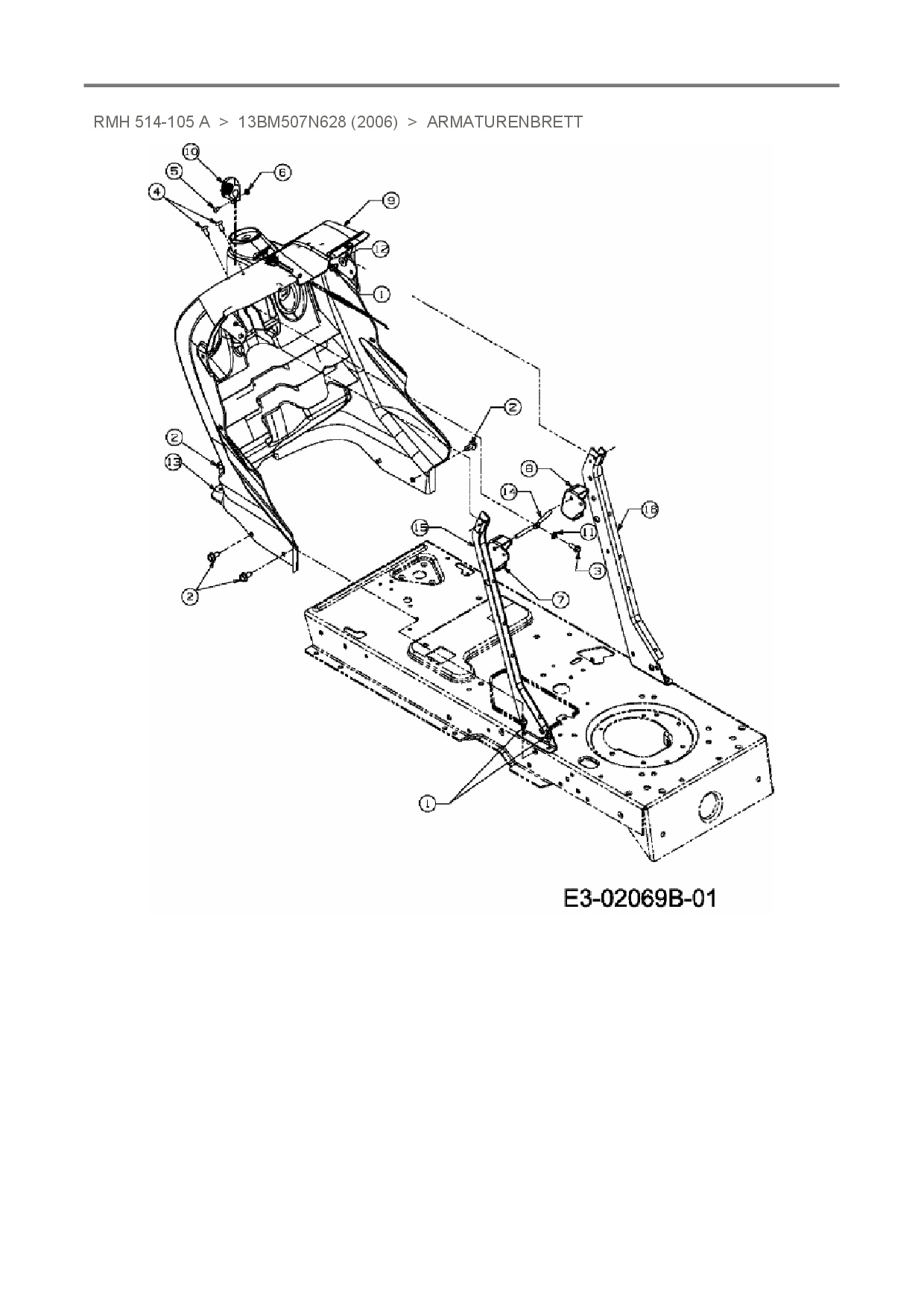 Ersatzteile für Rasentraktor Raiffeisen RMH 514-105 A aus der Zeichnung Armaturenbrett: