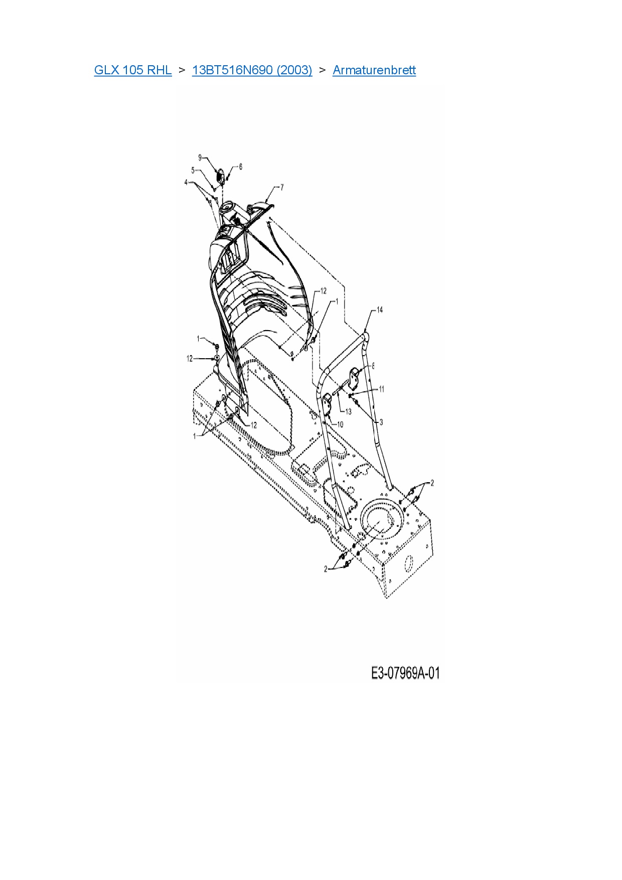 Ersatzteile für Rasentraktor Gutbrod GLX 105 RHL aus der Zeichnung Armaturenbrett: