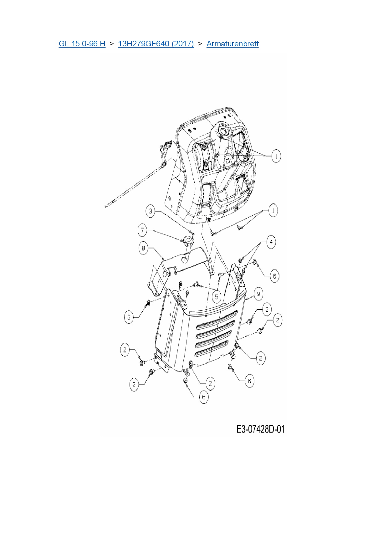 Ersatzteile für Rasentraktor Gartenland GL 15,0-96 H aus der Zeichnung Armaturenbrett:
