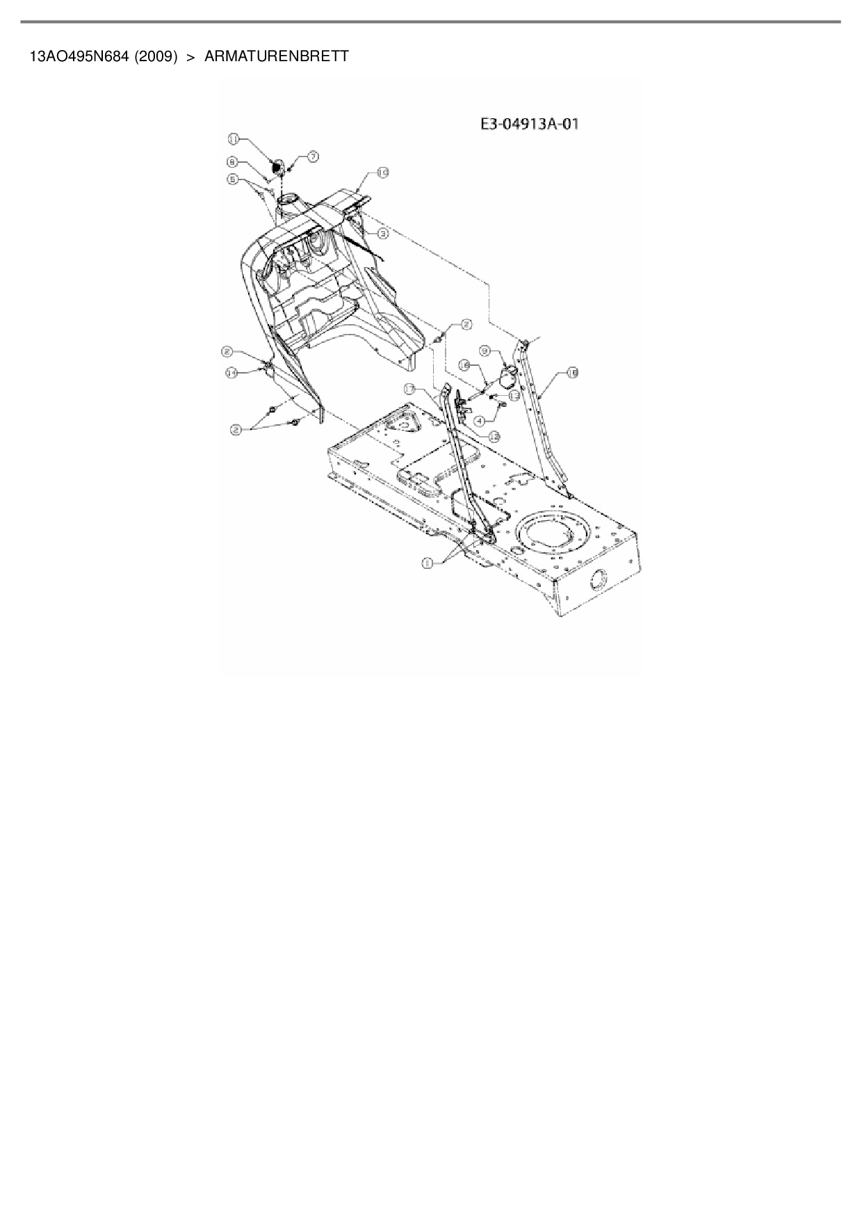 Ersatzteile für Rasentraktor Bolens BL 185/105 H aus der Zeichnung Armaturenbrett: