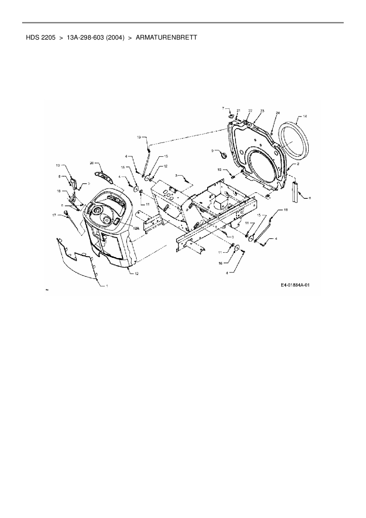 Ersatzteile für Rasentraktor Cub Cadet HDS 2205 aus der Zeichnung Armaturenbrett: