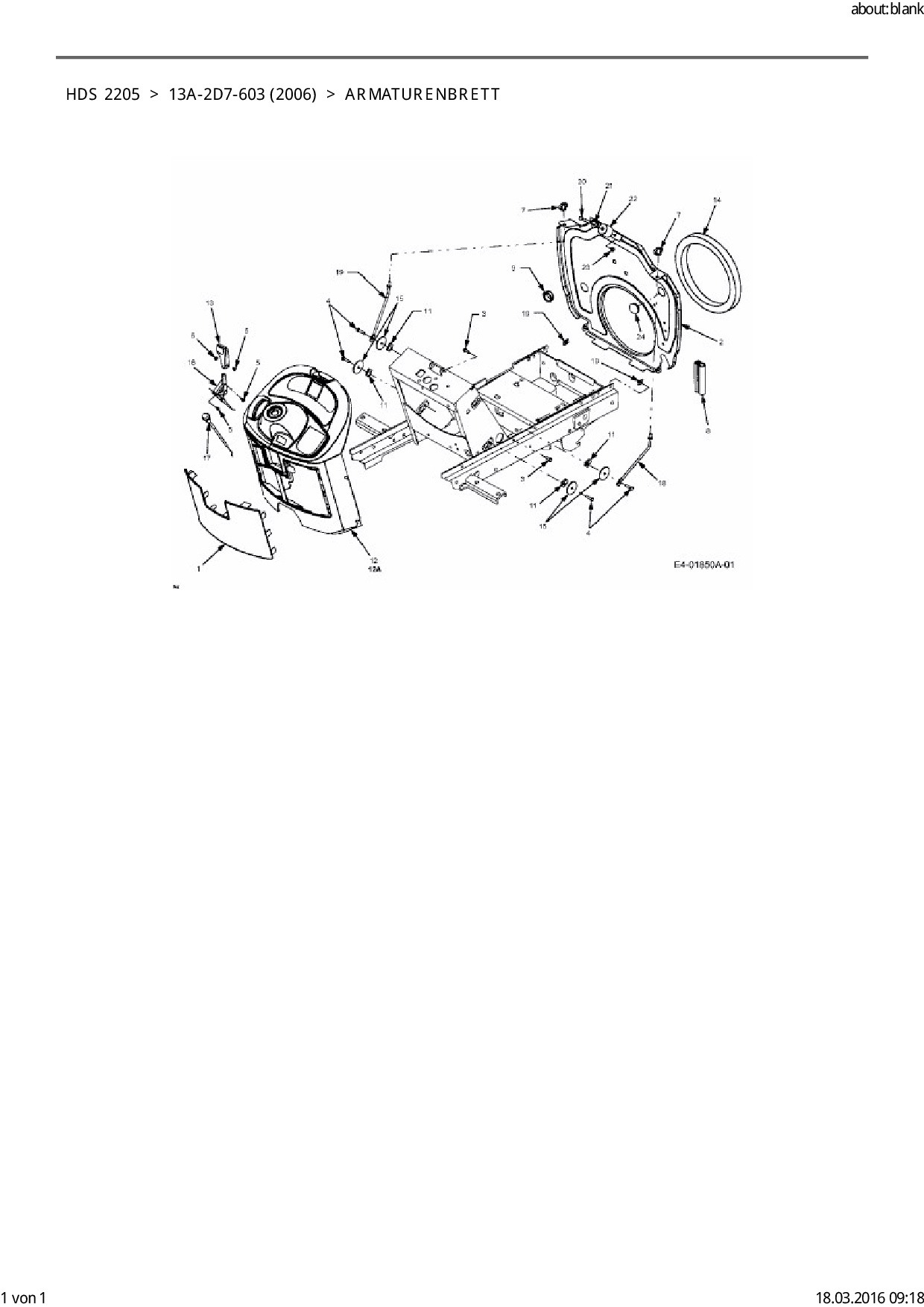 Ersatzteile für Rasentraktor Cub Cadet HDS 2205 aus der Zeichnung Armaturenbrett: