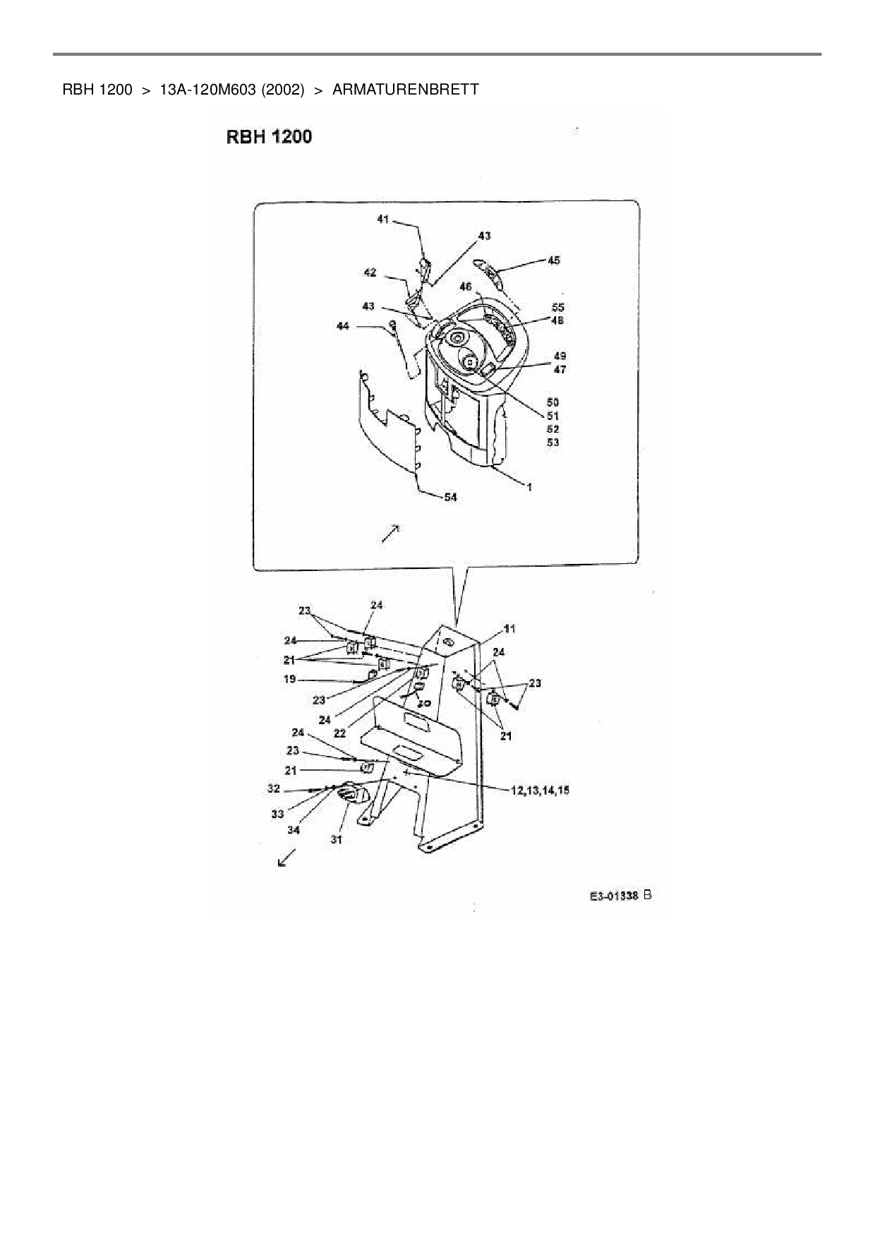 Ersatzteile für Rasentraktor Cub Cadet RBH 1200 aus der Zeichnung Armaturenbrett: