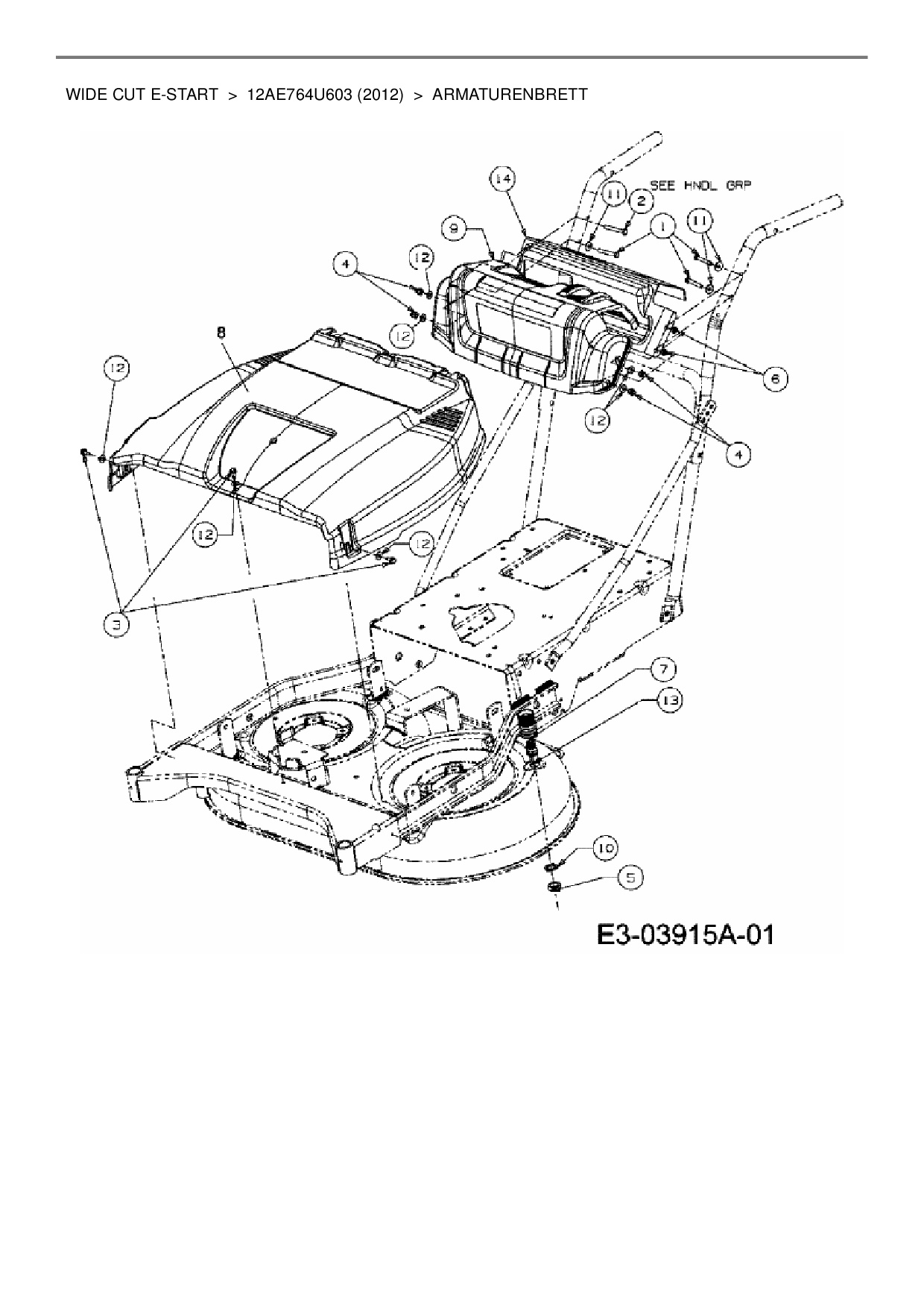 Ersatzteile für Motormäher mit Antrieb Cub Cadet Wide Cut E-Start aus der Zeichnung Armaturenbrett: