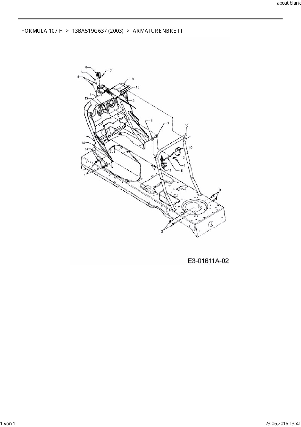 Zeichnung für EFCO Rasentraktor Formula 107 H mit der Geräte-Artikelnr. 13BA519G637 ab Baujahr 2003: