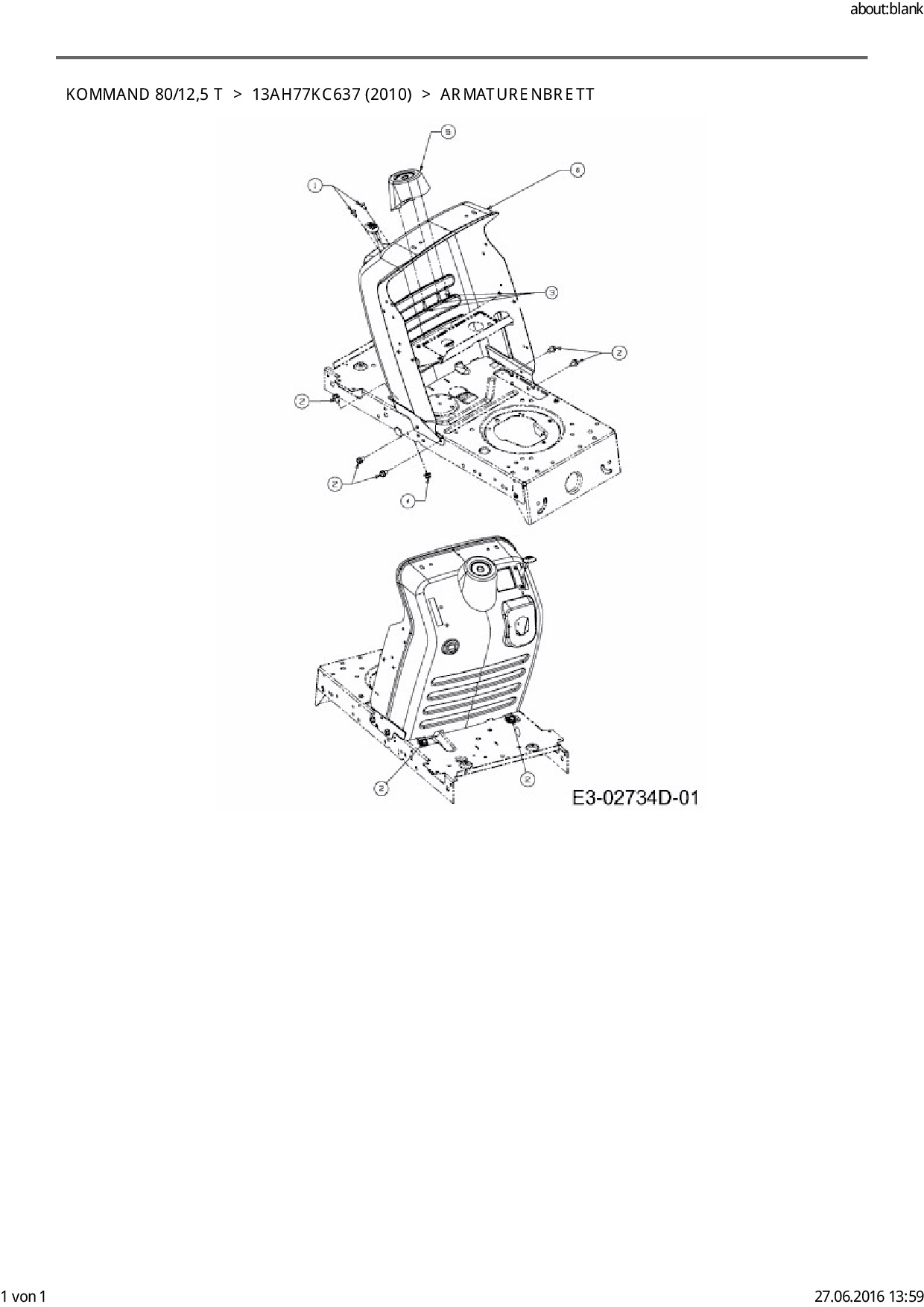 Zeichnung für EFCO Rasentraktor Kommand 80/12,5 T mit der Geräte-Artikelnr. 13AH77KC637 ab Baujahr 2010: