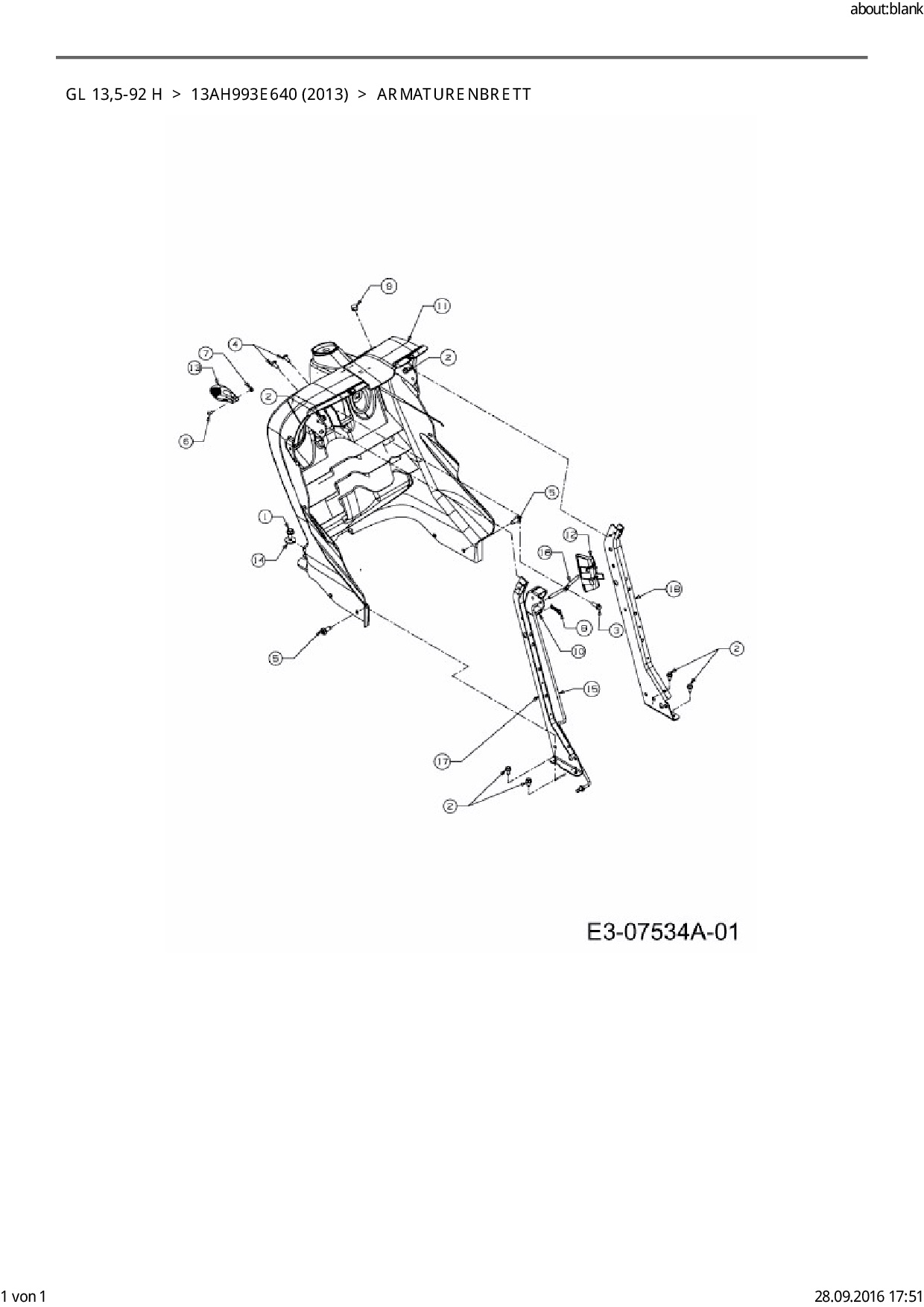 Ersatzteile für Rasentraktor Gartenland GL 13,5-92 H aus der Zeichnung Armaturenbrett: