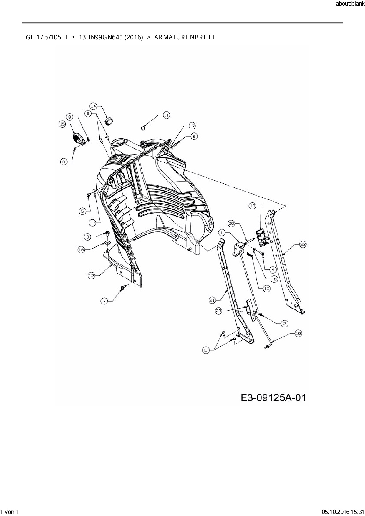 Download Ersatzteil-Zeichnung Gartenland GL 17.5/105 H Zeichnung Armaturenbrett (PDF-Format)