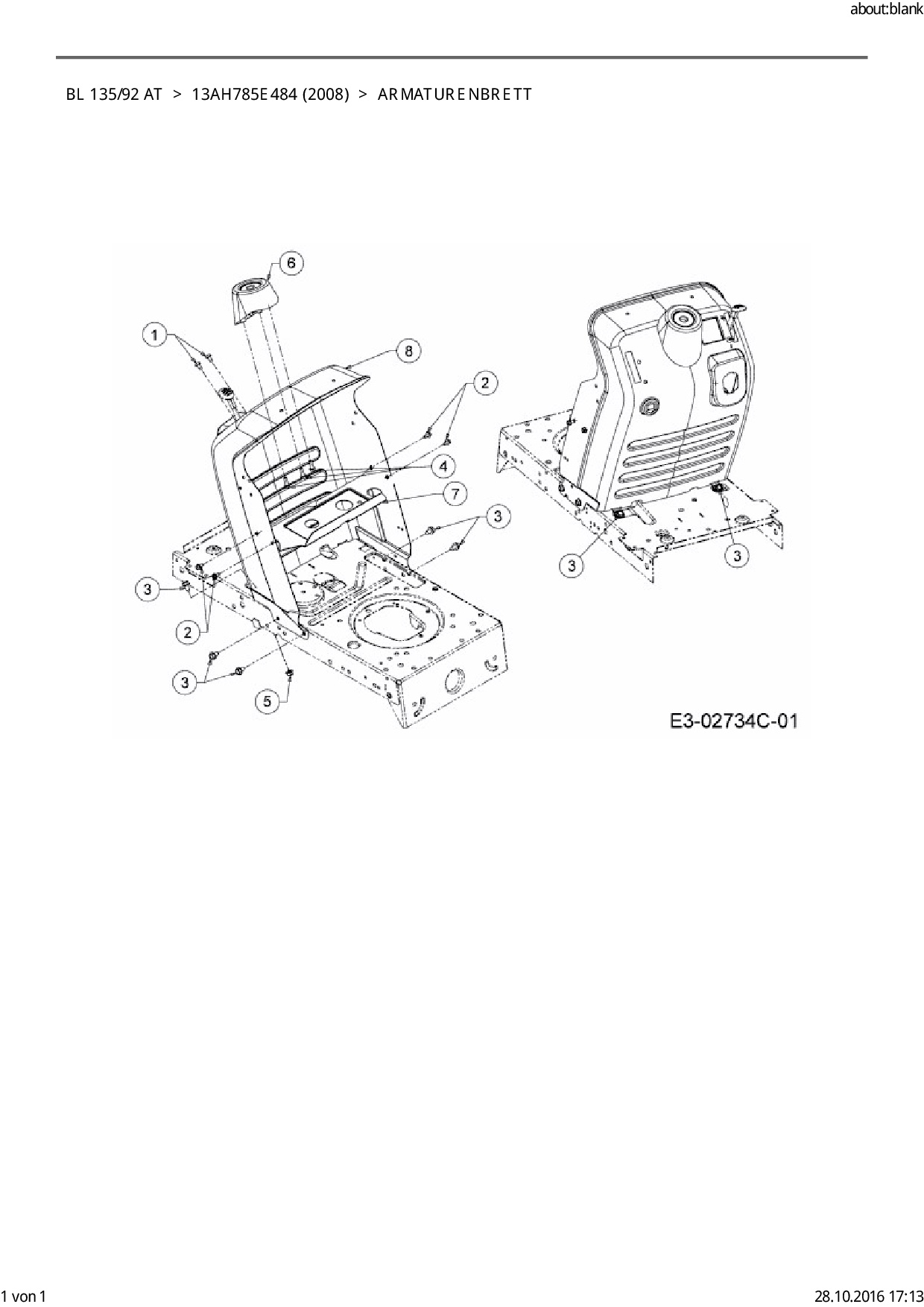 Ersatzteile für Rasentraktor Bolens BL 135/92 AT aus der Zeichnung Armaturenbrett: