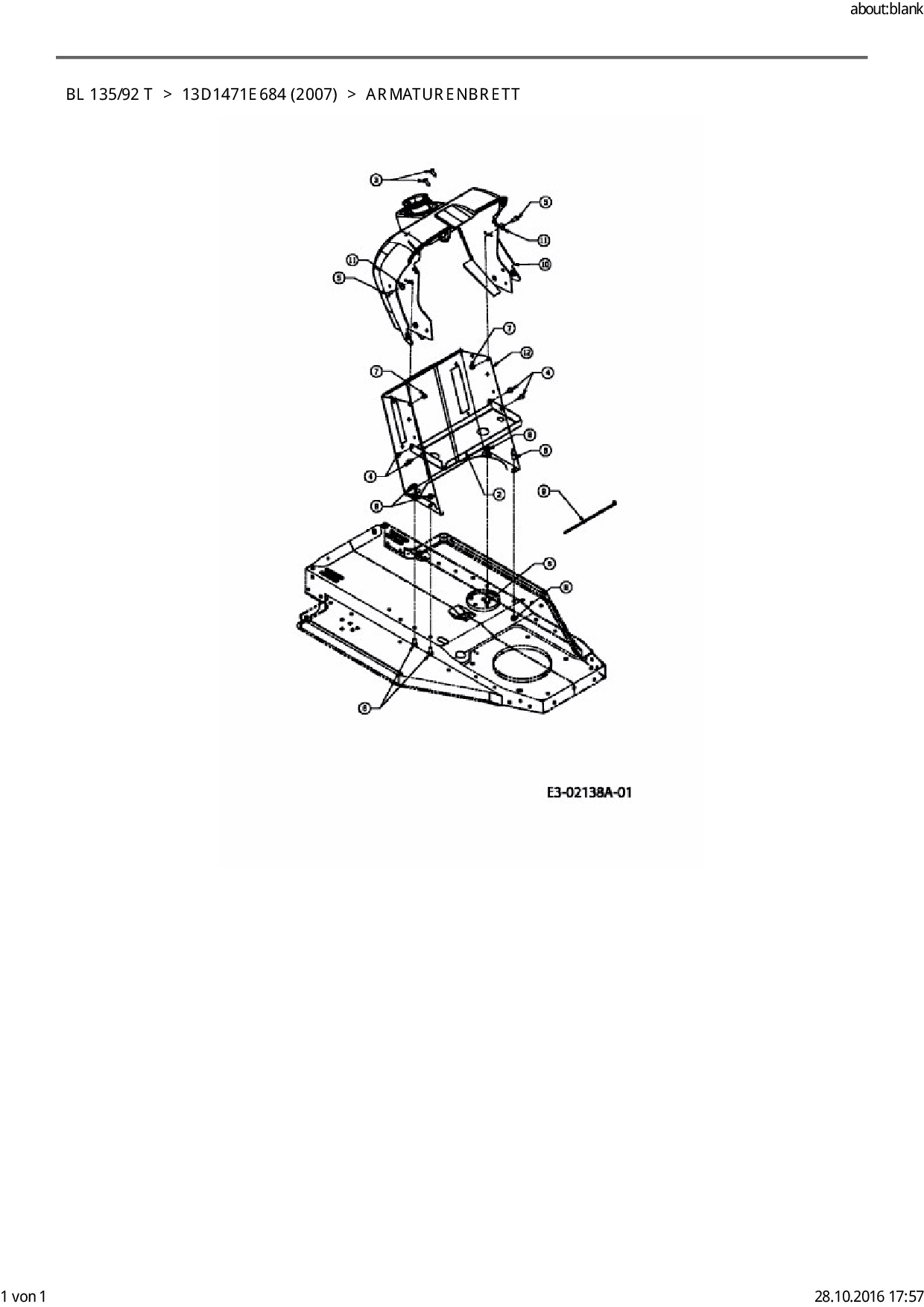 Ersatzteile für Rasentraktor Bolens BL 135/92 T aus der Zeichnung Armaturenbrett: