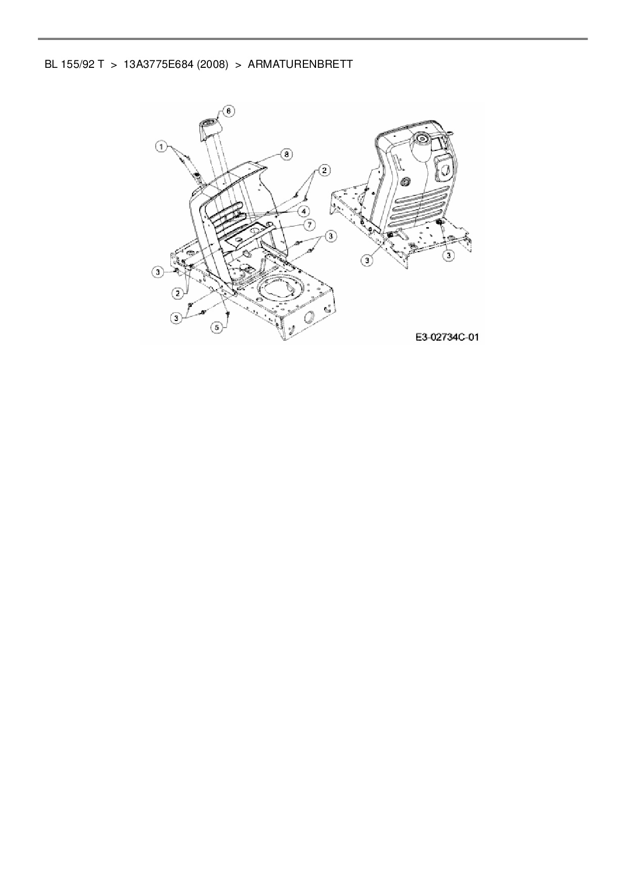 Ersatzteile für Rasentraktor Bolens BL 155/92 T aus der Zeichnung Armaturenbrett: