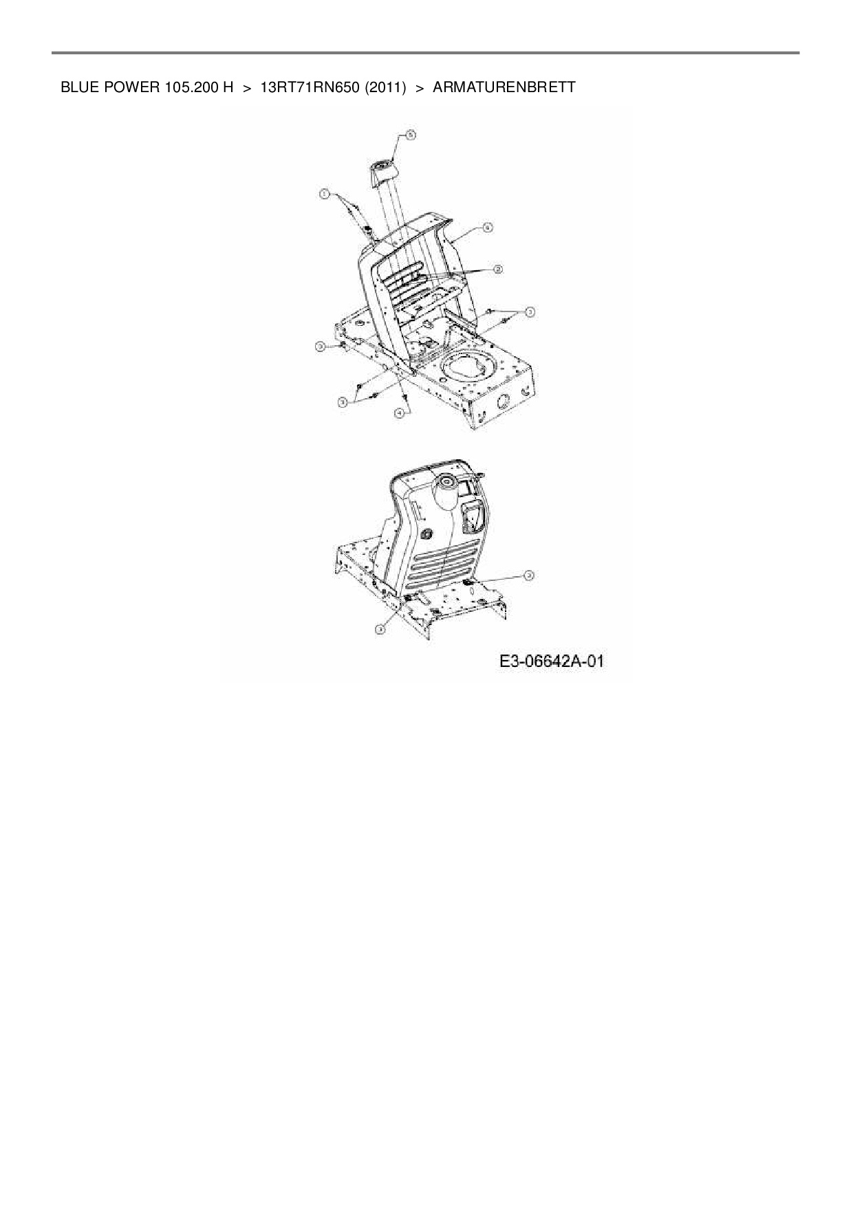 Ersatzteile für Rasentraktor Wolf-Garten Blue Power 105.200 H aus der Zeichnung Armaturenbrett: