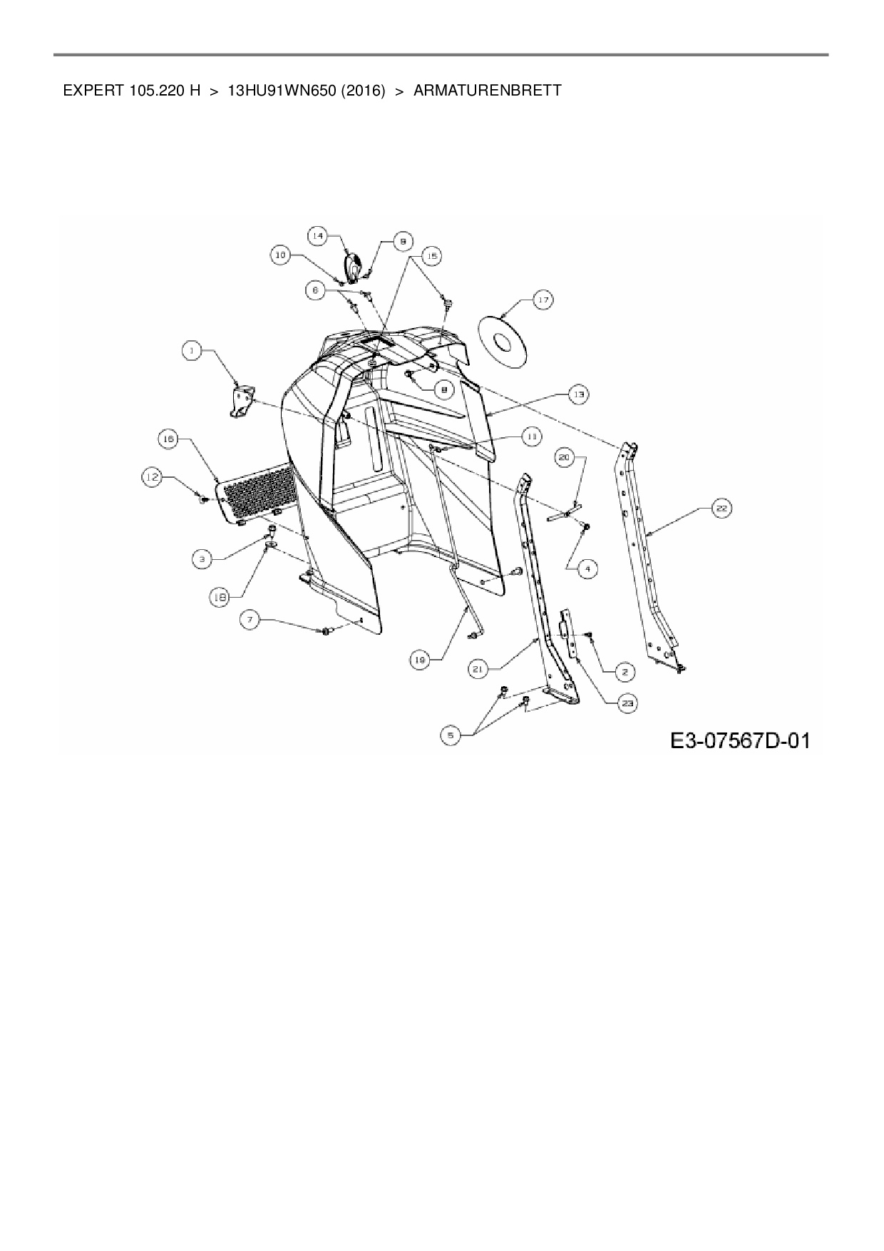 Download Ersatzteil-Zeichnung Wolf-Garten Expert Expert 105.220 H Zeichnung Armaturenbrett (PDF-Format)