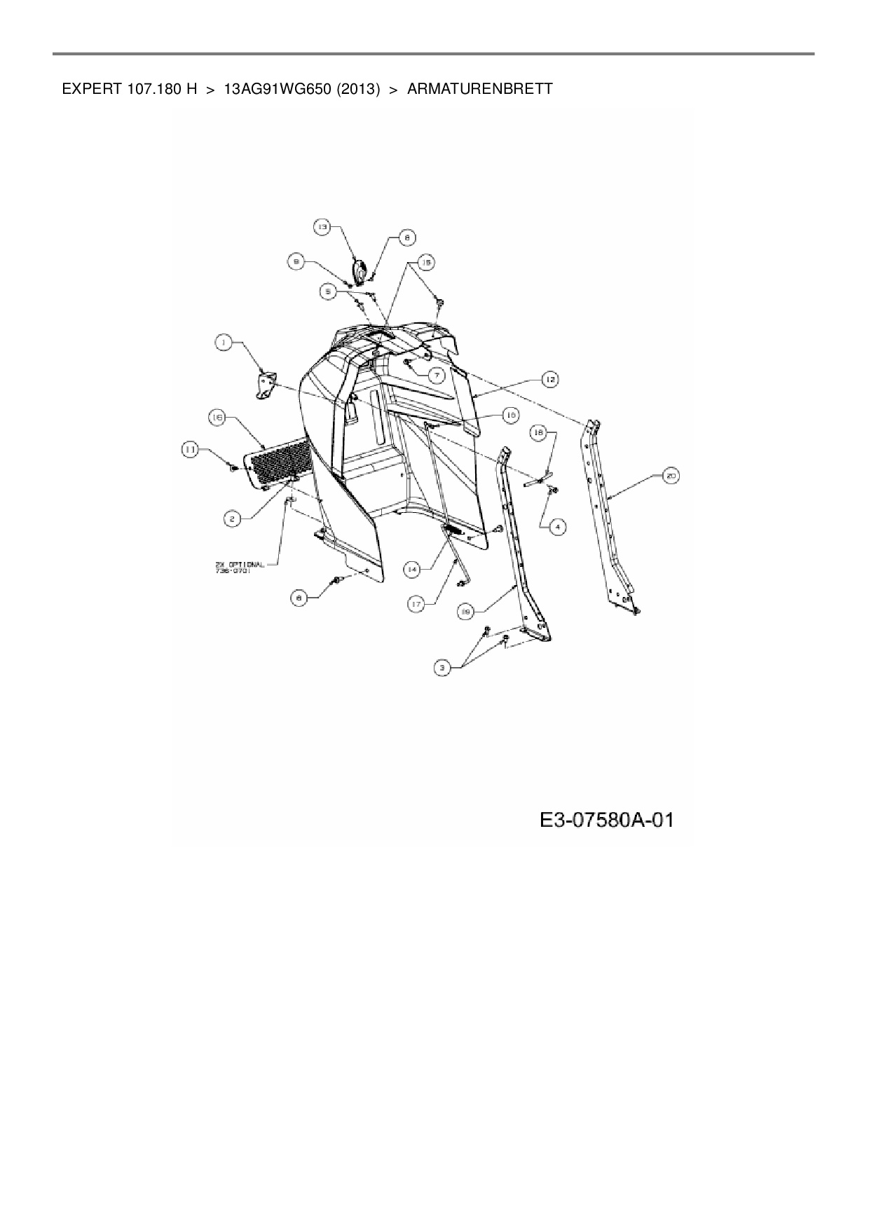 Ersatzteile für Rasentraktor Wolf-Garten Expert Expert 107.180 H aus der Zeichnung Armaturenbrett: