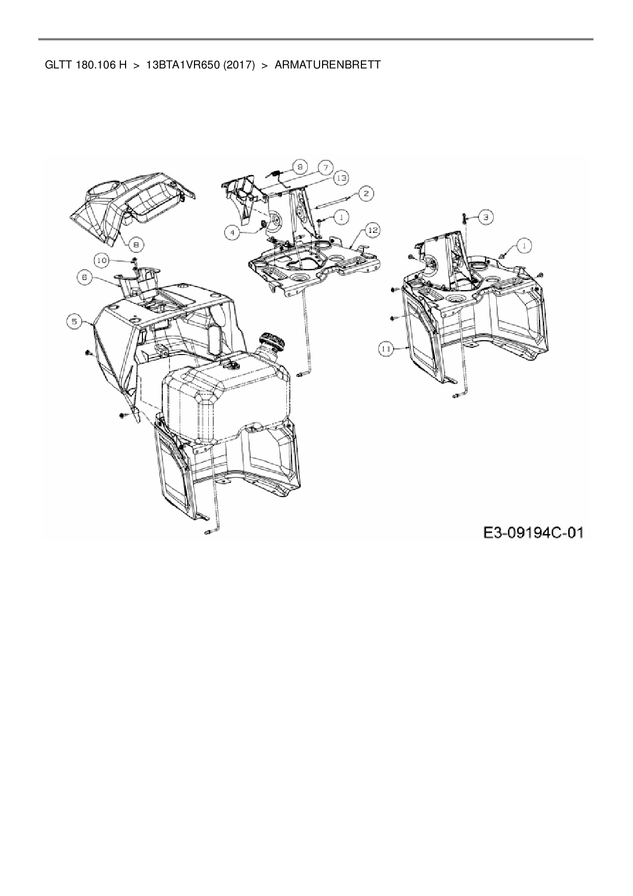 Ersatzteile für Rasentraktor Wolf-Garten Expert GLTT 180.106 H aus der Zeichnung Armaturenbrett: