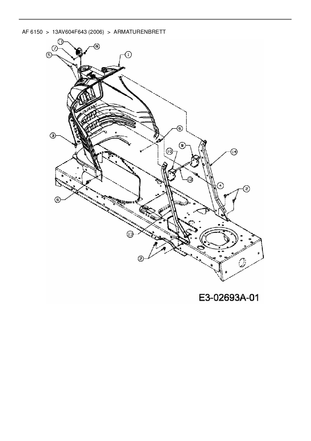 Ersatzteile für Rasentraktor Yard-Man AF 6150 aus der Zeichnung Armaturenbrett: