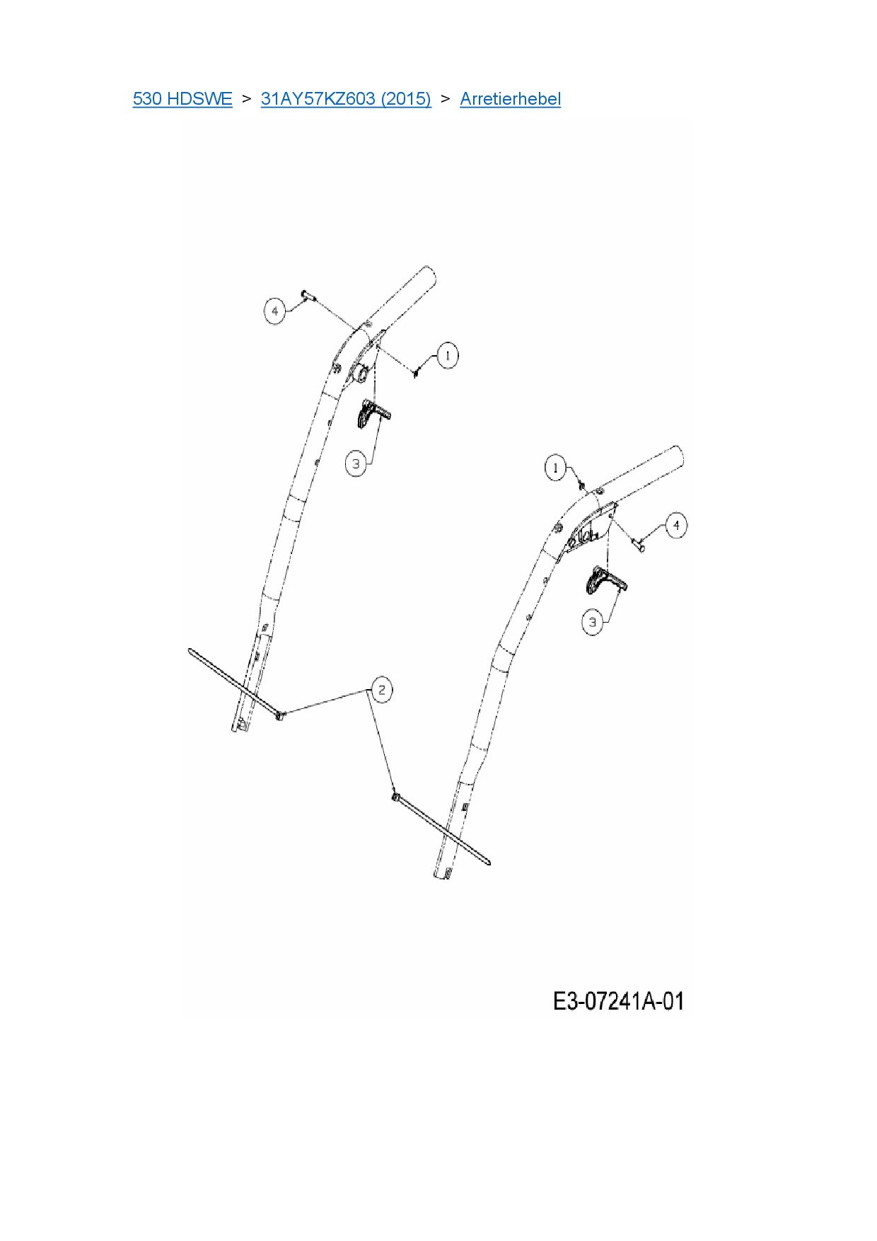 Ersatzteile für Schneefräse Cub Cadet 530 HDSWE aus der Zeichnung Arretierhebel: