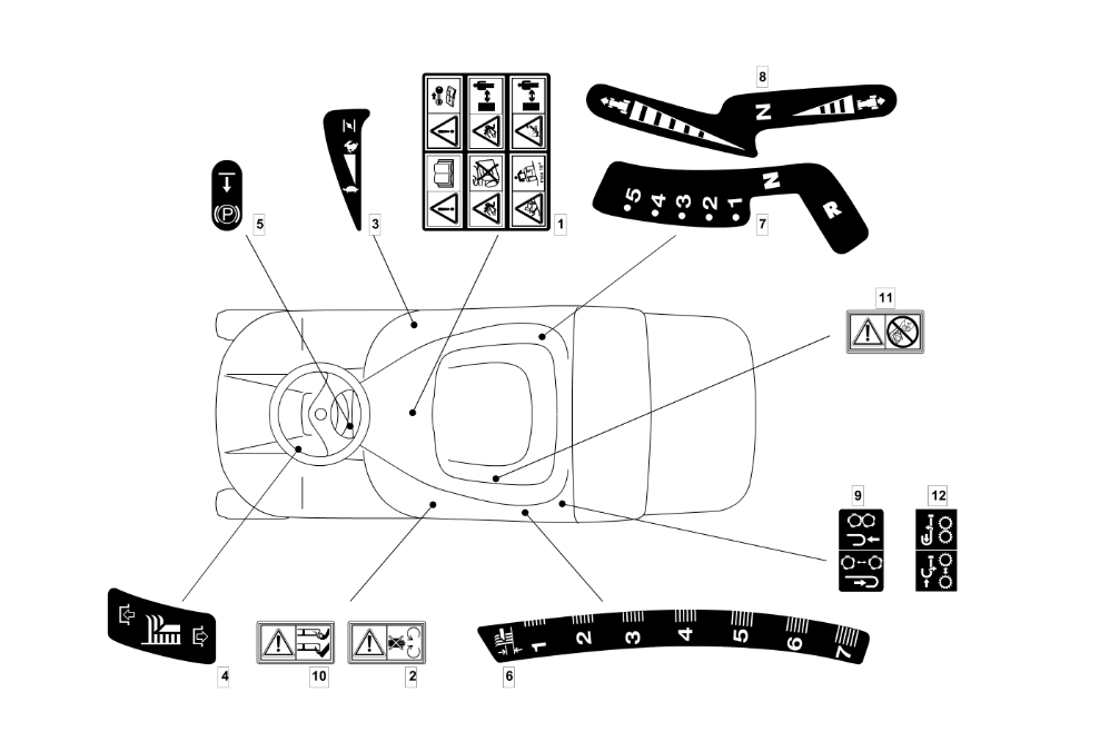 Hier finden Sie alle Ersatzteile für EFCO Rasentraktor EF 72C/12,5KM Cat.2012 aus der Zeichnung Aufkleber (1/2):