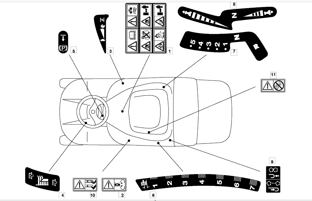 Hier finden Sie alle Ersatzteile für Oleo-Mac Rasentraktor OM 72C/12,5M Cat.2009 aus der Zeichnung für Aufkleber (1/2):