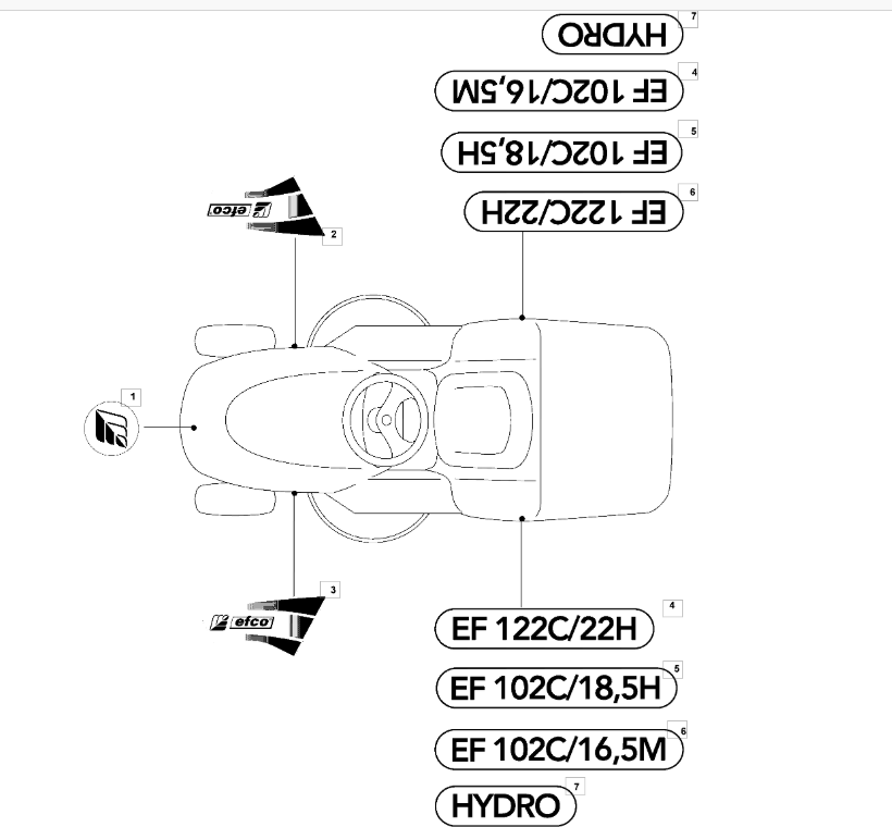 Hier finden Sie alle Ersatzteile für EFCO Rasentraktor EF 102C/18,5H Cat.2009 aus der Zeichnung Aufkleber (2/2):