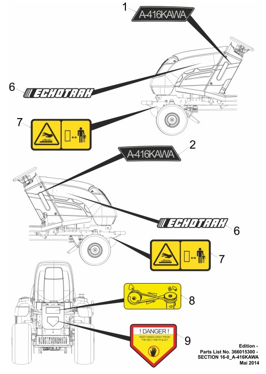 Zeichnung von ECHO-Motorgeräte Rasentraktoren A-Serie A-416KAWA Bj. 2016 Aufkleber I A-416KAWA:
