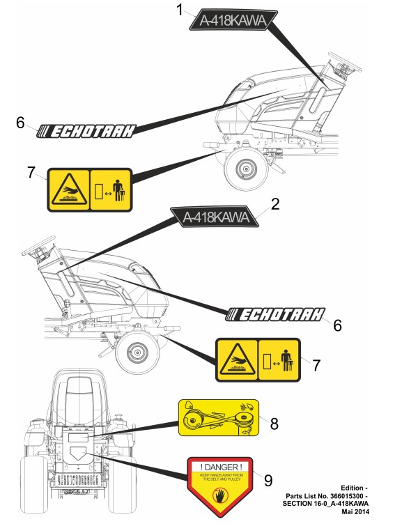 Zeichnung von ECHO-Motorgeräte Rasentraktoren A-Serie A-418KAWA Bj. 2016 Aufkleber I A-418KAWA: