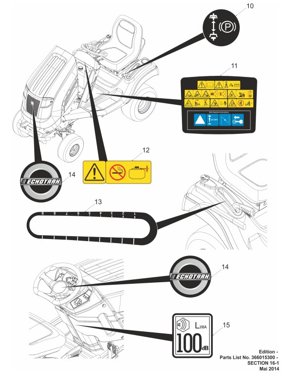 Zeichnung von ECHO-Motorgeräte Rasentraktoren A-Serie A-415B - E1100101 Aufkleber II: