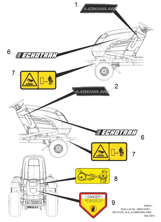 Zeichnung von ECHO-Motorgeräte Rasentraktoren A-Serie A-426KAWA-4WD Bj. 2016 Aufkleber I:
