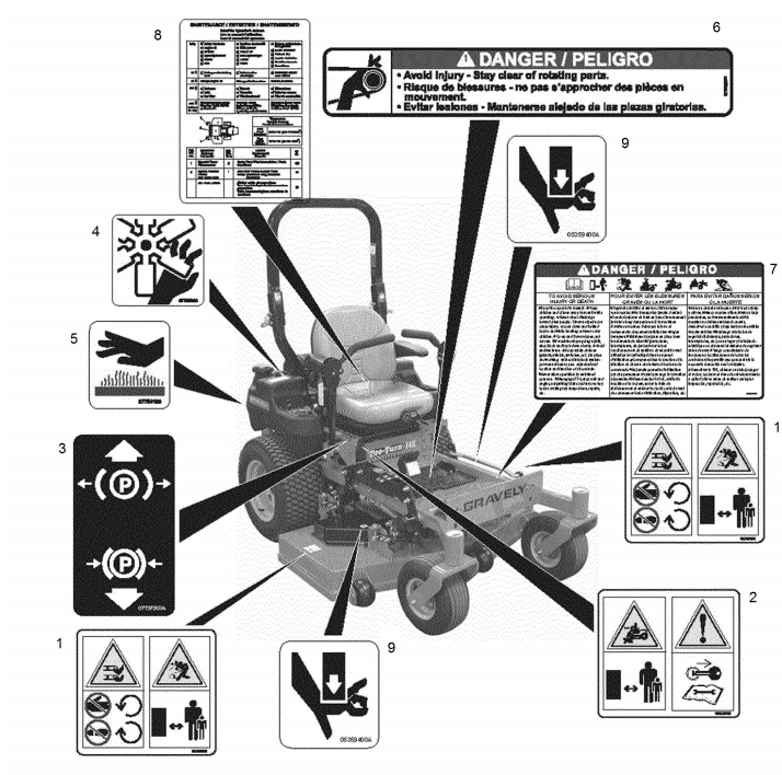 Zeichnung von Gravely PRO-TURN-148Z (991300) S.-NR.:010500-019999 Aufkleber, Sicherheit: