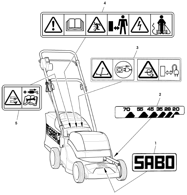 Zeichnung Sabo Rasenmäher Elektro-Rasenmäher 36-EL EDV-NR.SA491 Aufkleber: