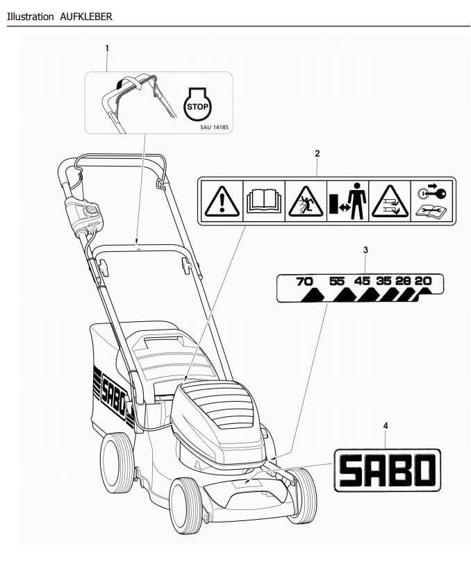 Zeichnung Sabo Rasenmäher Akku-Rasenmäher 36-ACCU EDV-NR. SA1780 Aufkleber: