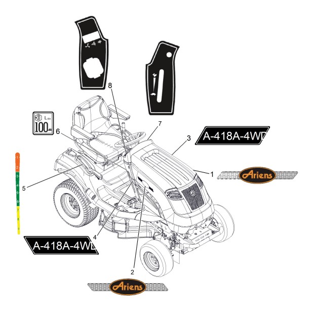 Zeichnung von Ariens Rasentraktoren A-4XXA-Serie A-418A-4WD - A1100131 Aufkleber: